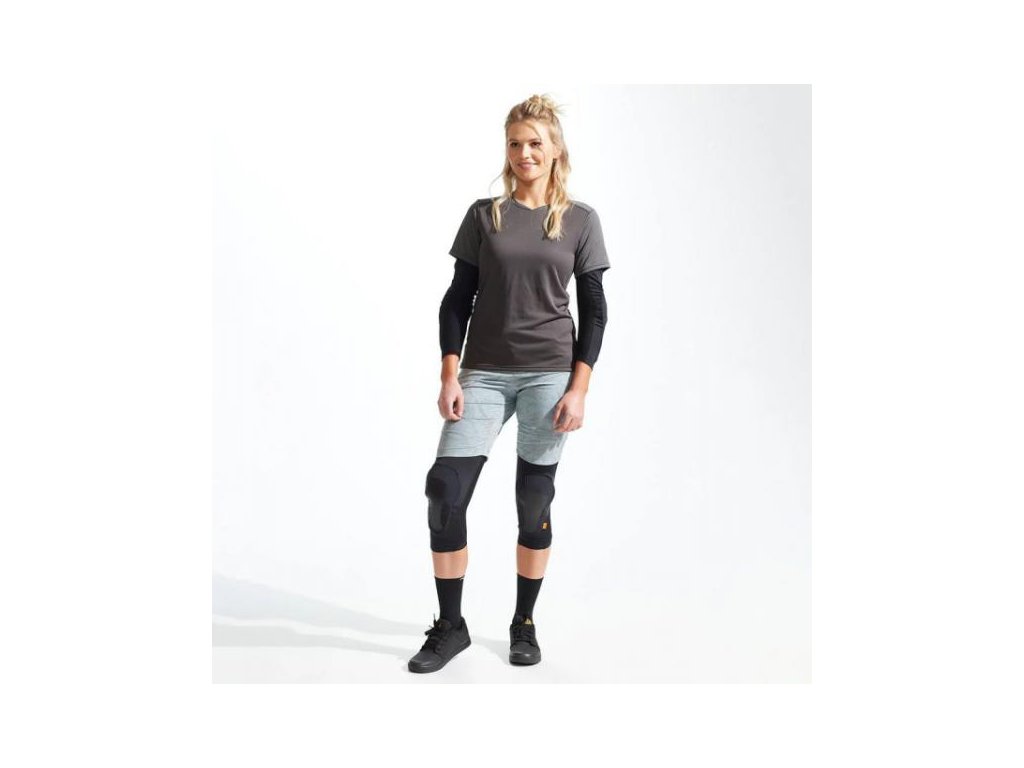 Delší design inspirovaný návleky na kolena se širokými elastickými úchyty a silikonovým vnitřním potiskem drží chrániče na místě