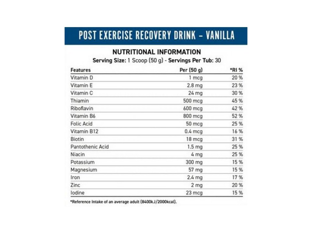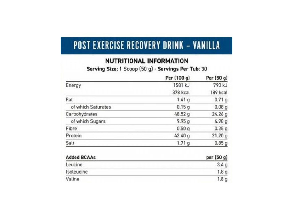 Smíchejte 1 odměrku (50 g) se 400-500 ml studené vody a dobře protřepejte. Konzumujte ihned po tréninku. V případě vytrvalostního výkonu přesahujícího 2 hodiny se doporučují 2-3 odměrky.