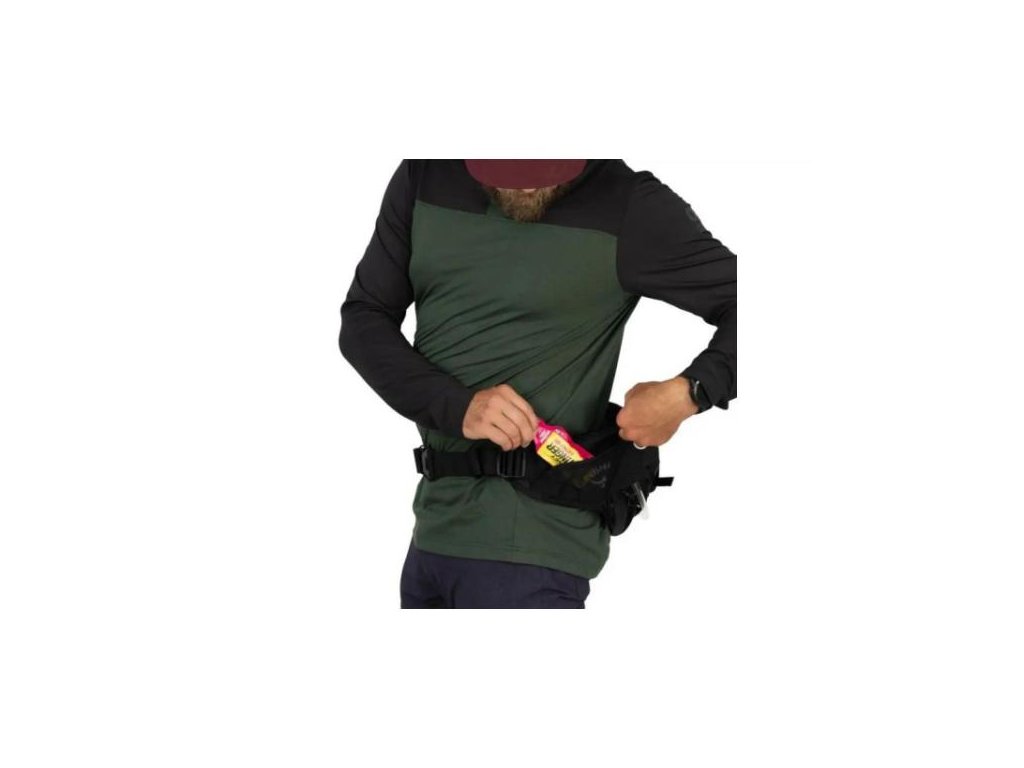 Uvnitř se nachází 1,5 l hydrovak, který je součástí ledvinky, a stále vám ještě zbývá dostatek prostoru pro ostatní věci. Na bederáku se nacházejí dvě kapsy kryté zipem. Přední strečová kapsa bezpečně uschová chrániče kolen, rukavice nebo třeba větrovku.