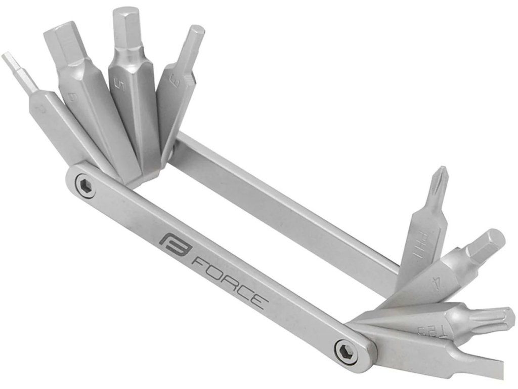 Multiklíč Force Mini Eco 8 funkcí – lehké a kompaktní cyklo nářadí s imbusy, šroubováky a Torx T25 pro rychlé opravy na cestách.