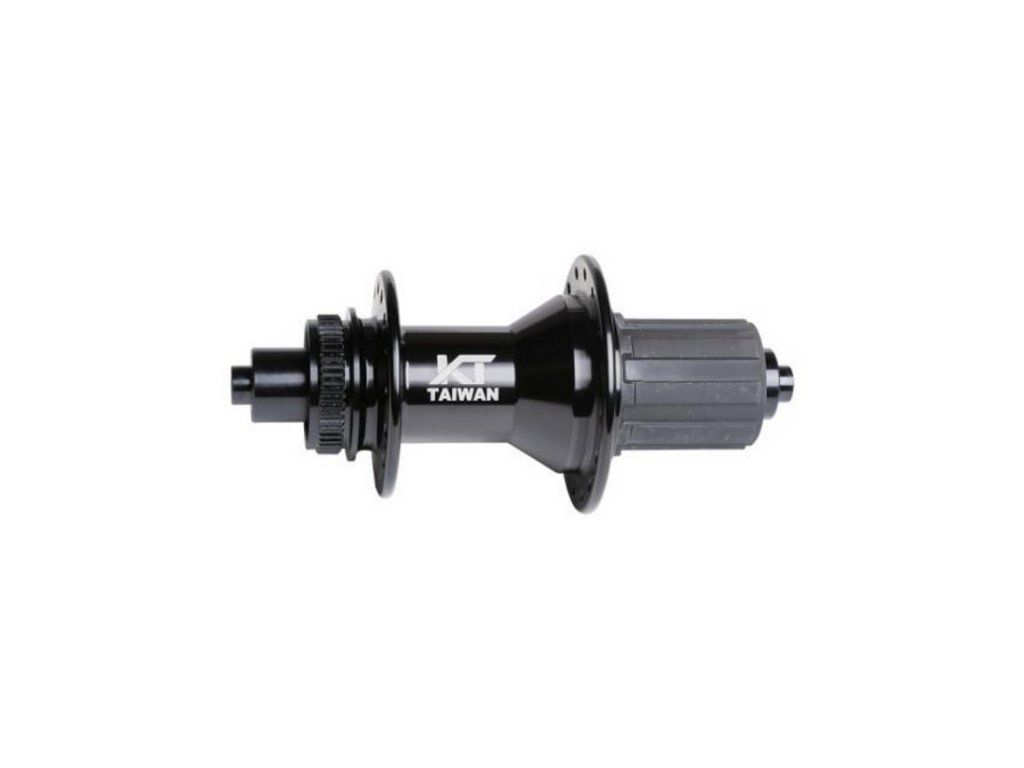 Kvalitní ložiskový zadní náboj s vyměnitelnou variabilní koncovkou a ořechem.