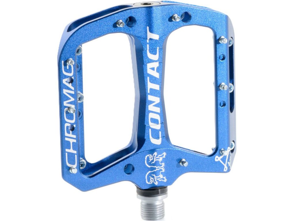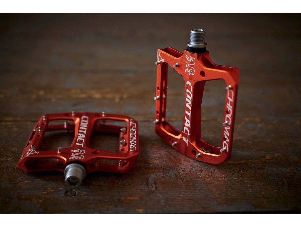 Pedály Chromag Contact – odolné platformové pedály s hliníkovým tělem, nízkým profilem a vyměnitelnými piny pro maximální grip v terénu.
