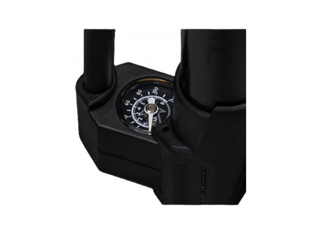 Sklopná patka a výsuvný manometr.