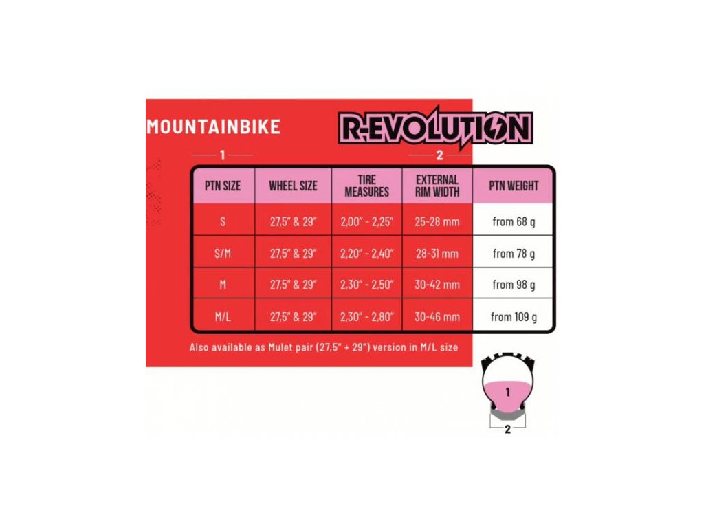 Revoluční dynamická struktura vyvinutá s velkým úsilím a know-how mnohaletého vývoje speciálních vložek do ráfků. Díky novému tvaru umožňuje přesné usednutí do ráfku a tím perfektně chrání ráfek i plášť. R-Evolutin vložka je určena hlavně pro XC/MARATON disciplíny.